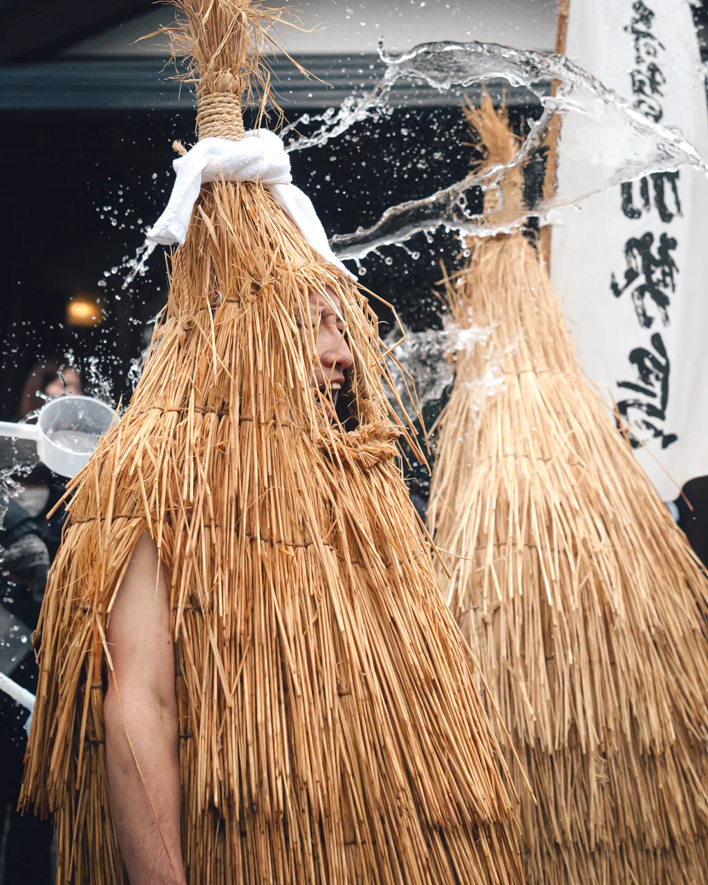 神の化身が浴びる祝い水