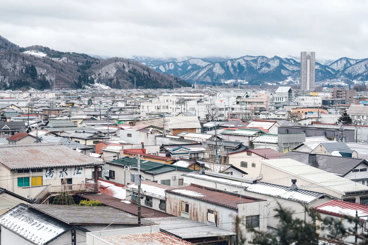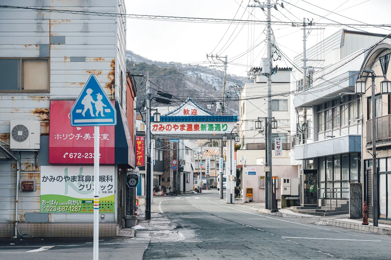 山形県の南東部、蔵王連峰のふもとに広がる上山市。人口2万7千人ほどのこの街は、お城や宿場町、そして温泉の街として古くから親しまれてきました。かみのやま温泉駅から10分ほど歩くと、どこか懐かしい温泉街の雰囲気が広がっています。「明日、この穏やかな街はどんな雰囲気になるのだろう」と楽しみに、かみのやま温泉駅周辺を散策しました。
