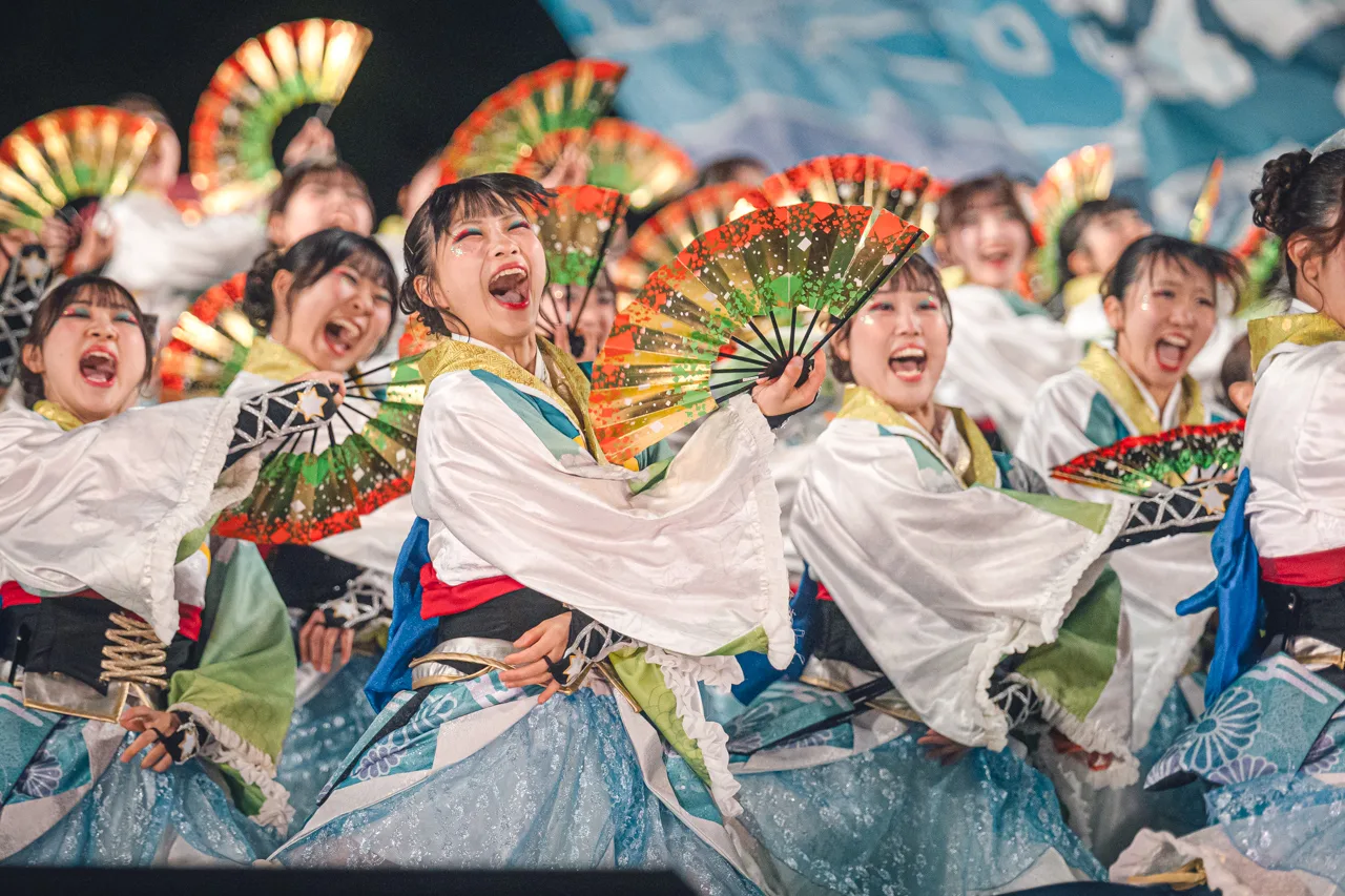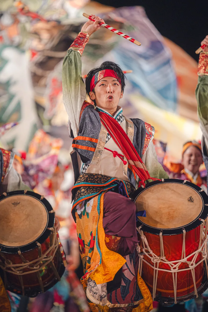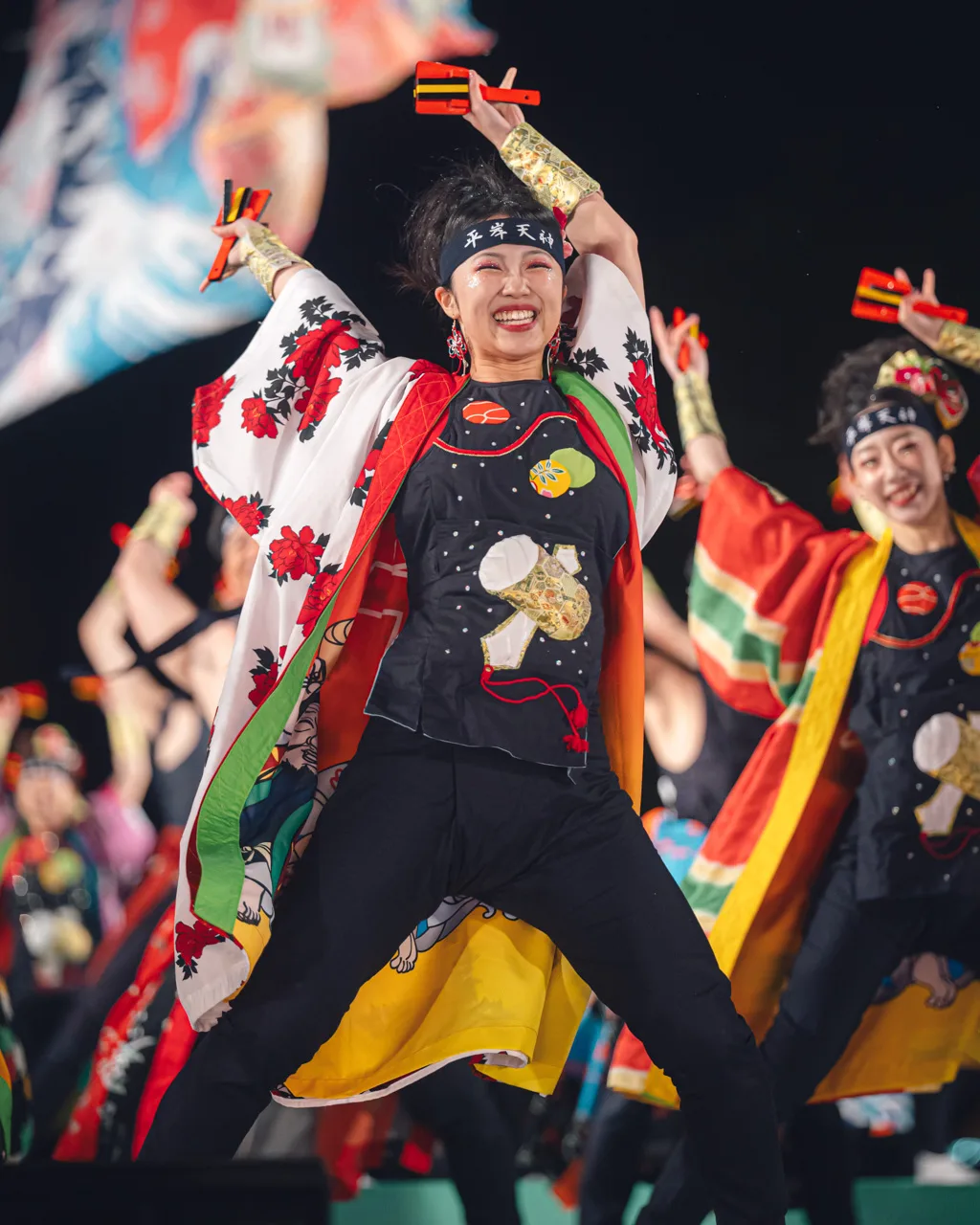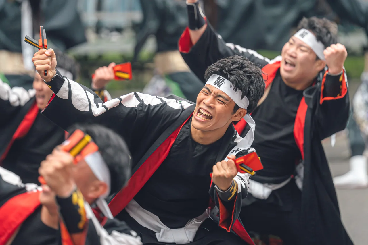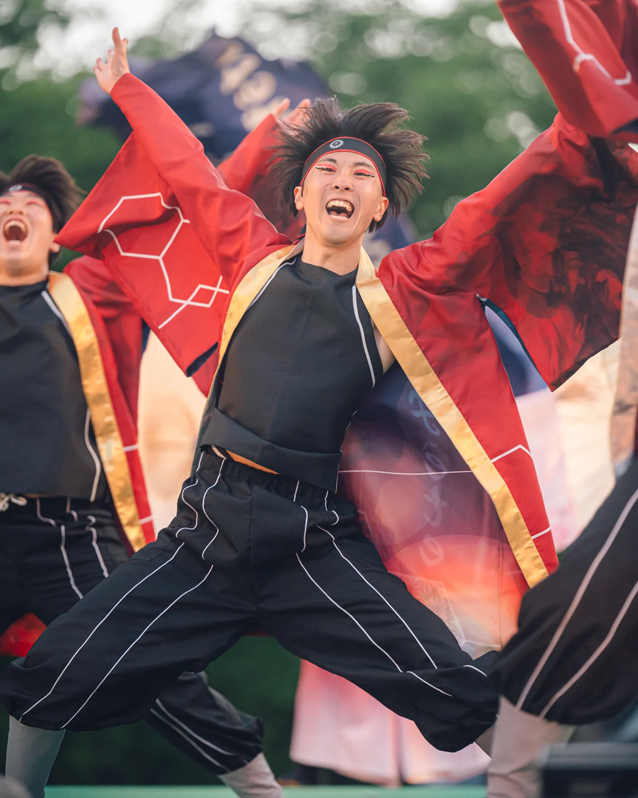 能登を拠点に、これまで10年以上にわたって「祭り」を撮ってきた僕にとって、ヨサコイを継続的に撮るきっかけになったのが YOSAKOIソーラン日本海 。まだコロナ禍だった2022年、踊り子さんがマスクをして踊っていた年のことでした。ヨサコイは年間を通して祭りやイベントが行われていることから、とても身近に感じるようになり、チームも覚えながら、たくさん撮らせていただくようになりました。祭りと同様に、撮ることはもちろん、人との出会いも楽しく、写真家・カメラマン仲間やチームの方々とのつながりが、写真家としての人生を豊かにしてくれていると感じています。