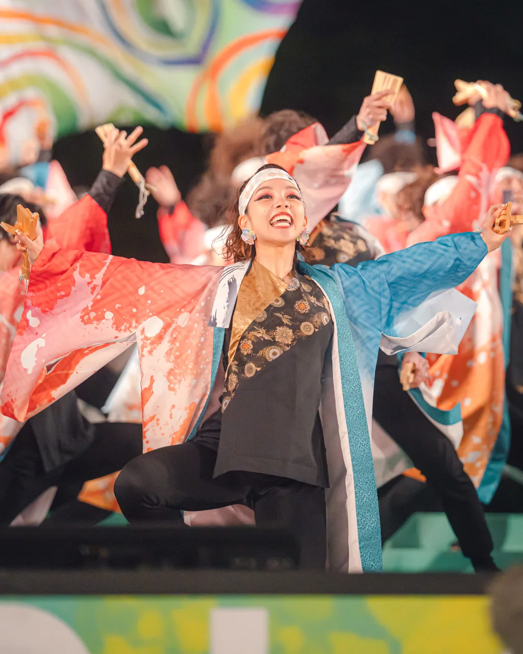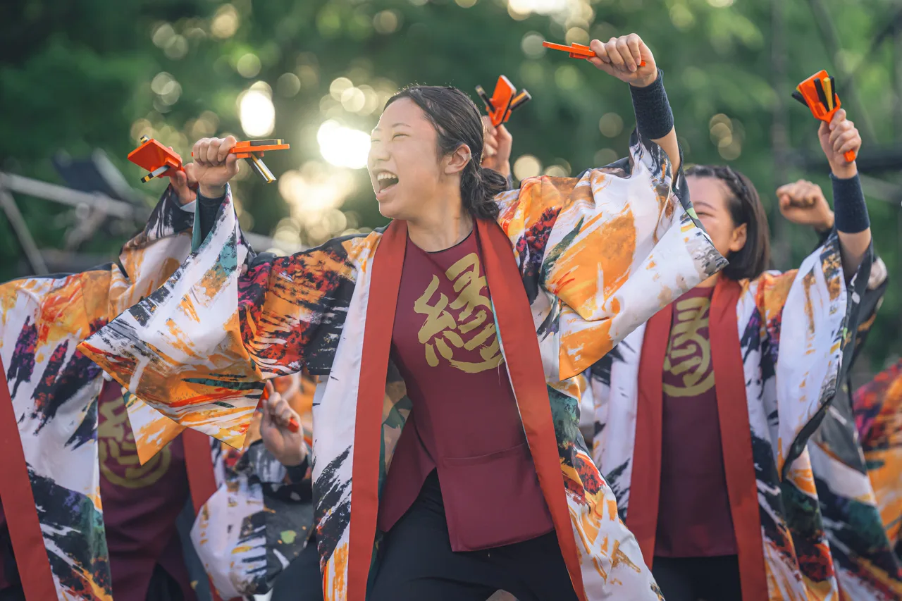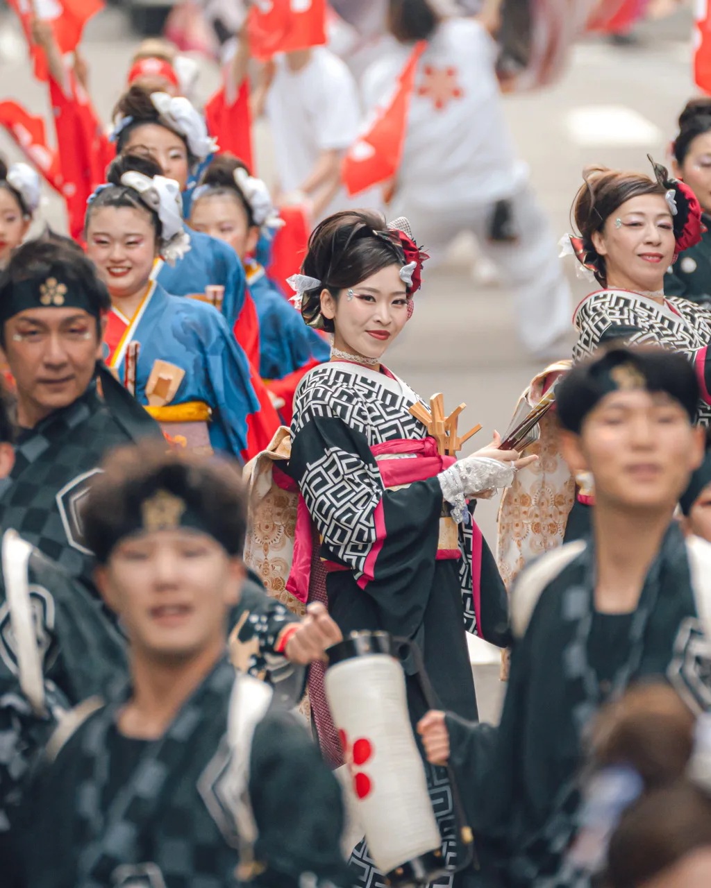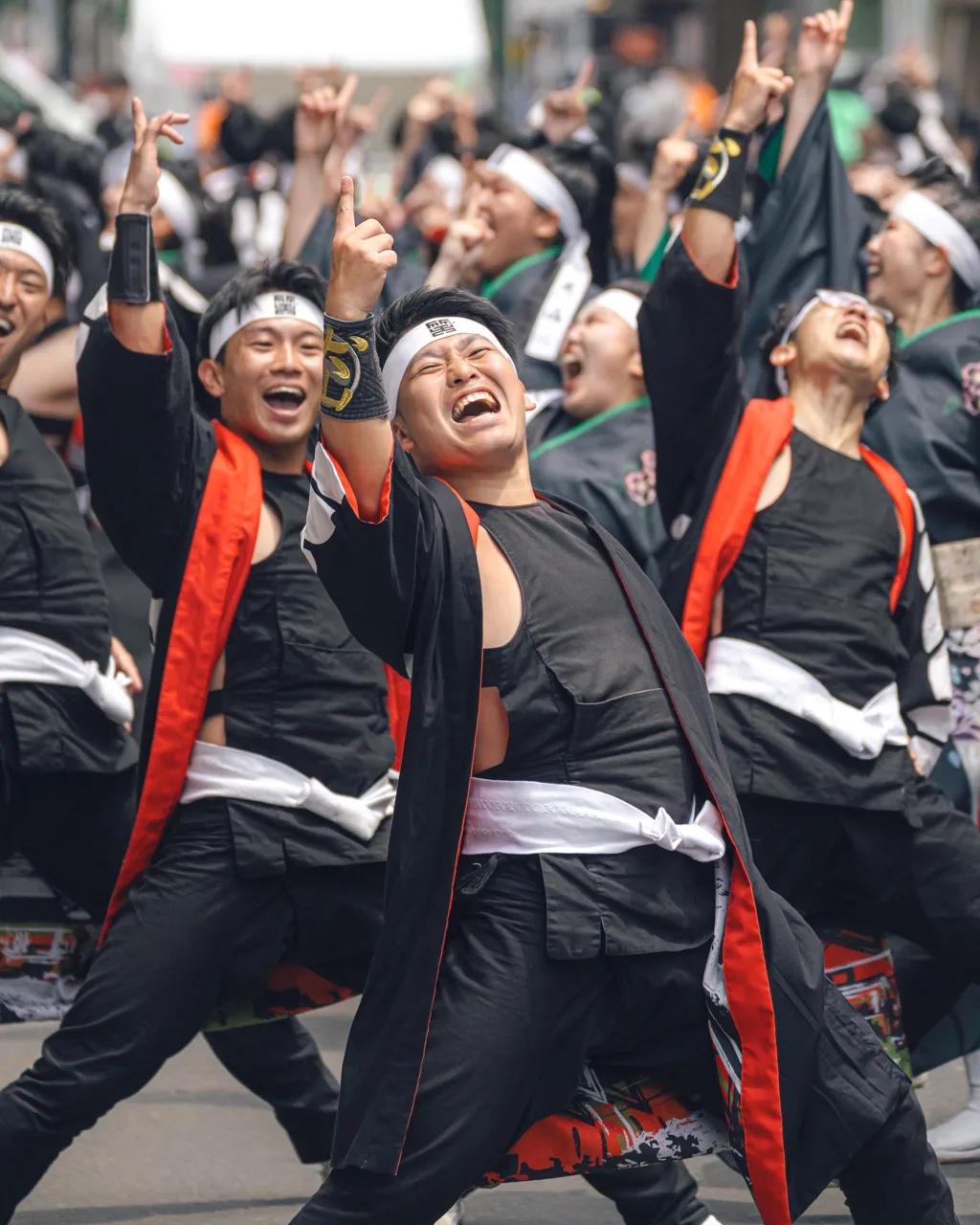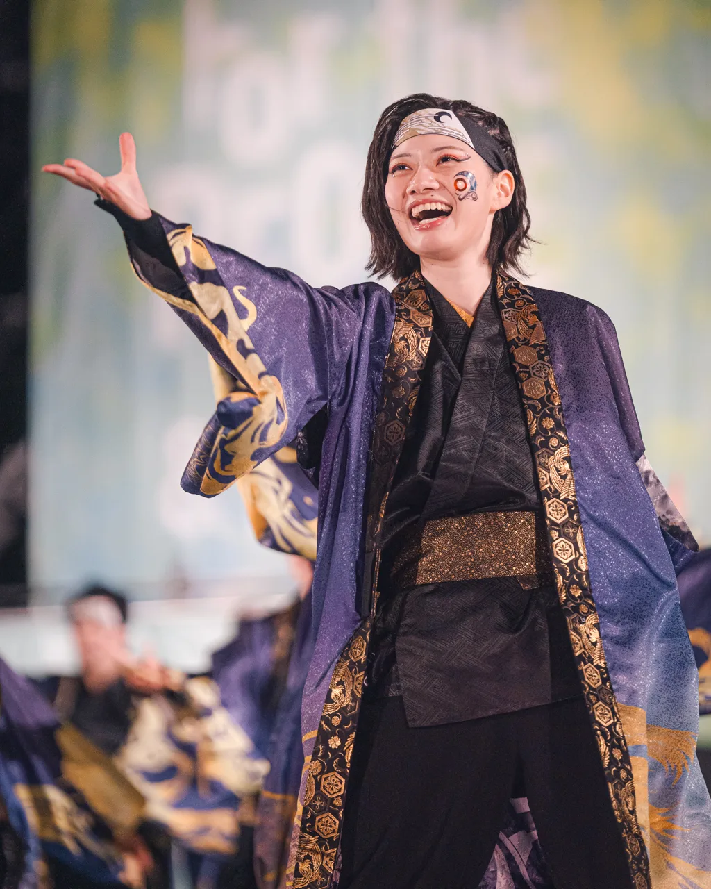 能登を拠点に、これまで10年以上にわたって「祭り」を撮ってきた僕にとって、ヨサコイを継続的に撮るきっかけになったのが YOSAKOIソーラン日本海 。まだコロナ禍だった2022年、踊り子さんがマスクをして踊っていた年のことでした。ヨサコイは年間を通して祭りやイベントが行われていることから、とても身近に感じるようになり、チームも覚えながら、たくさん撮らせていただくようになりました。祭りと同様に、撮ることはもちろん、人との出会いも楽しく、写真家・カメラマン仲間やチームの方々とのつながりが、写真家としての人生を豊かにしてくれていると感じています。