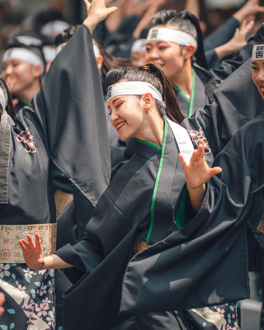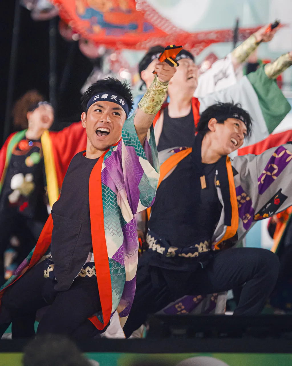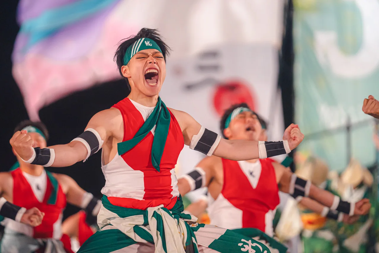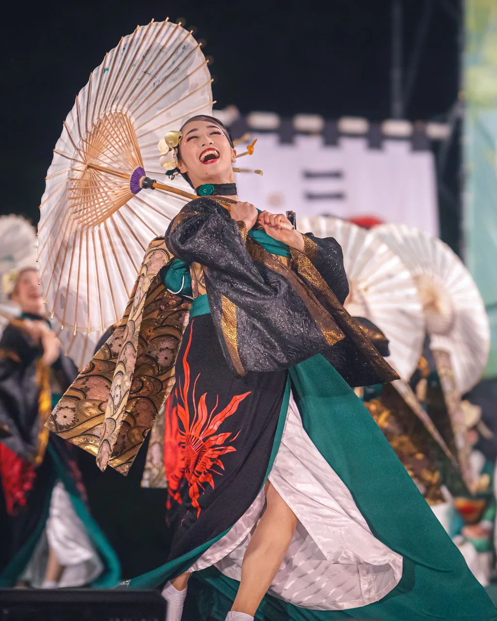 能登を拠点に、これまで10年以上にわたって「祭り」を撮ってきた僕にとって、ヨサコイを継続的に撮るきっかけになったのが YOSAKOIソーラン日本海 。まだコロナ禍だった2022年、踊り子さんがマスクをして踊っていた年のことでした。ヨサコイは年間を通して祭りやイベントが行われていることから、とても身近に感じるようになり、チームも覚えながら、たくさん撮らせていただくようになりました。祭りと同様に、撮ることはもちろん、人との出会いも楽しく、写真家・カメラマン仲間やチームの方々とのつながりが、写真家としての人生を豊かにしてくれていると感じています。