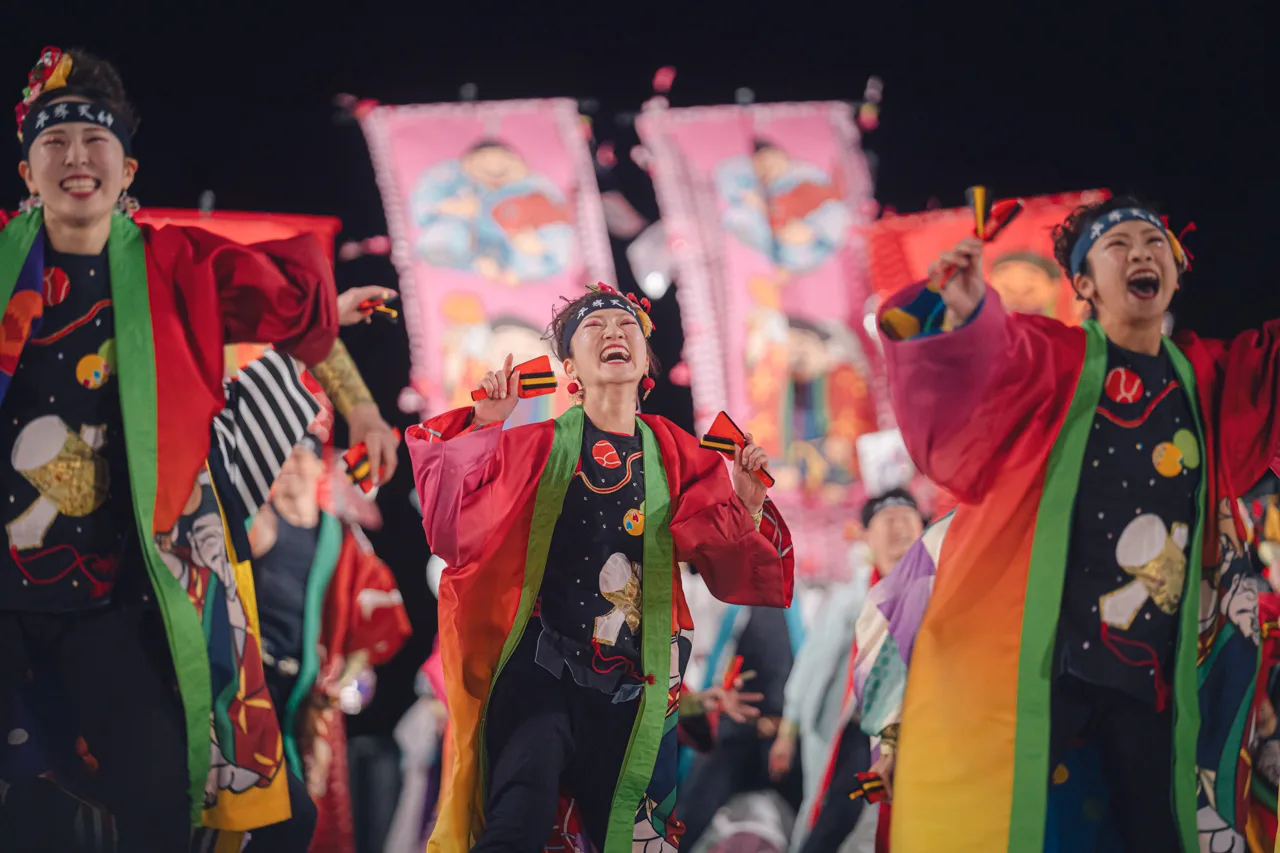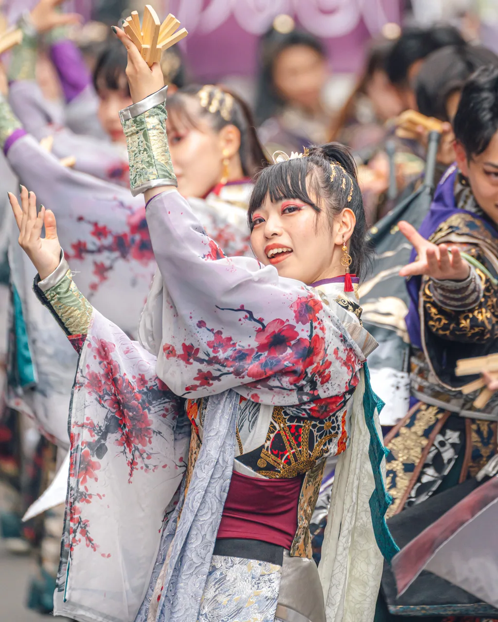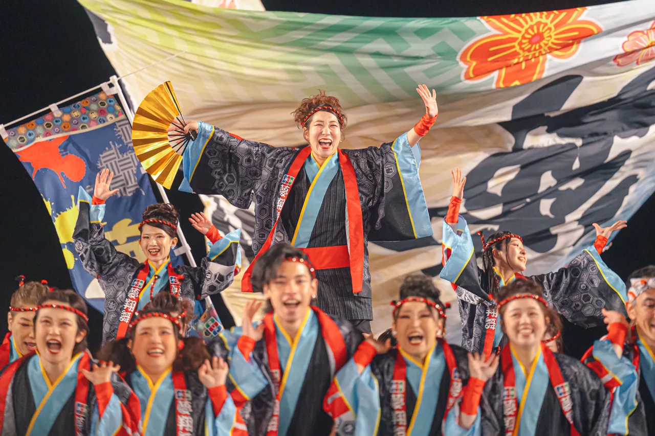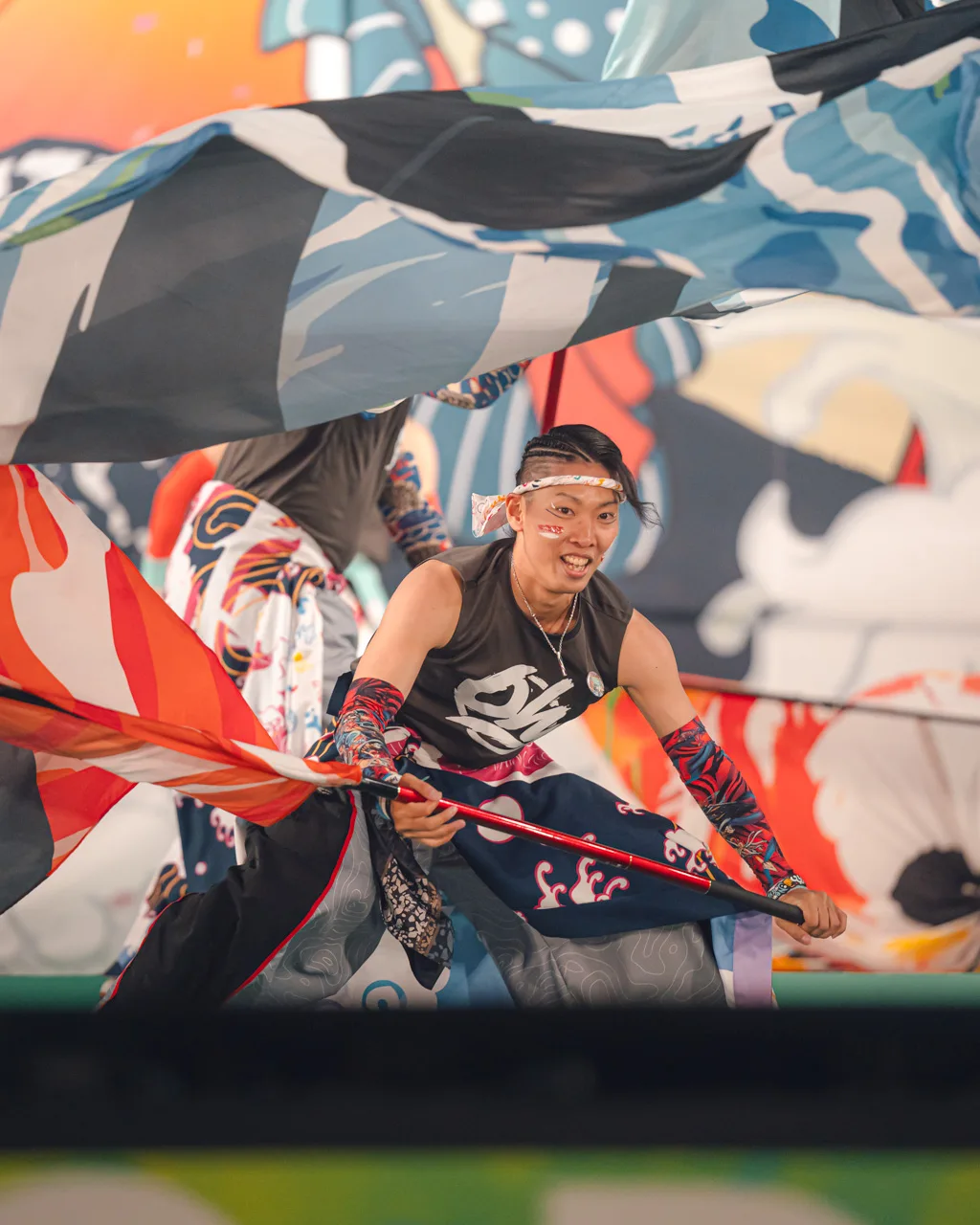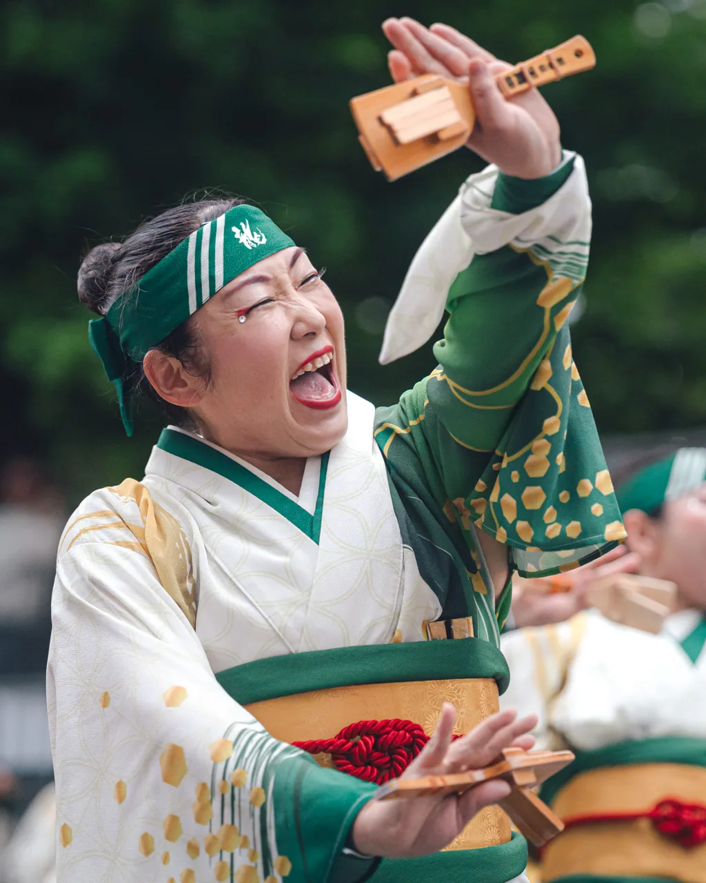 能登を拠点に、これまで10年以上にわたって「祭り」を撮ってきた僕にとって、ヨサコイを継続的に撮るきっかけになったのが YOSAKOIソーラン日本海 。まだコロナ禍だった2022年、踊り子さんがマスクをして踊っていた年のことでした。ヨサコイは年間を通して祭りやイベントが行われていることから、とても身近に感じるようになり、チームも覚えながら、たくさん撮らせていただくようになりました。祭りと同様に、撮ることはもちろん、人との出会いも楽しく、写真家・カメラマン仲間やチームの方々とのつながりが、写真家としての人生を豊かにしてくれていると感じています。